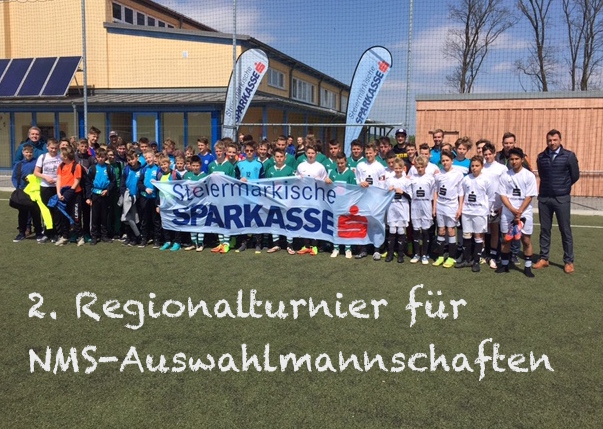 Am Montag den 24.04.2017 fand am Kunstrasenplatz des JUFA Hotel Fürstenfeld die Vorrunde des 2. Regionalturniers für NMS-Auswahlmannschaften statt. Ein großes Dankeschön gilt vorweg dem Team des JUFA Fürstenfeld für die Bereitstellung der perfekten Infrastruktur unseres Turniers und der Sparkasse Fürstenfeld, die alle SpielerInnen des Turniers mit einer Wurstsemmel und einem Getränk versorgten!