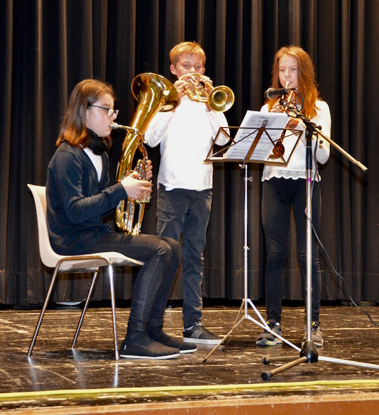 Beim Auftakt zur 9. Schul- und Berufsinformationsmesse am 12.10.2017 sorgten unsere SchülerInnen im Zuge der Eröffnungsfeier für die musikalische Umrahmung. Neben Tanz und Gesang, gab auch unsere Bläsergruppe eine Fanfare zum Besten!