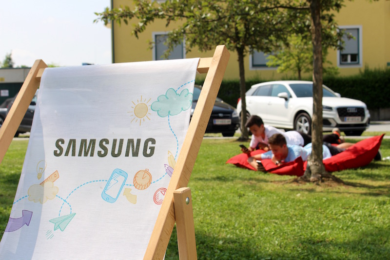 Beim mobilen Klassenzimmer der Firma Samsung lernen SchülerInnen, sich kreativ und aktiv in den neuen Technologien auszudrücken, die unser aller Zukunft massiv beeinflussen werden. Konkret bringen ausgebildete IT-TrainerInnen den Kindern im Rahmen von Workshops das Programmieren von Handy-Apps und Robotern bei – inhaltlicher Partner und Experte ist das Institut für Softwaretechnologie der TU Graz.
