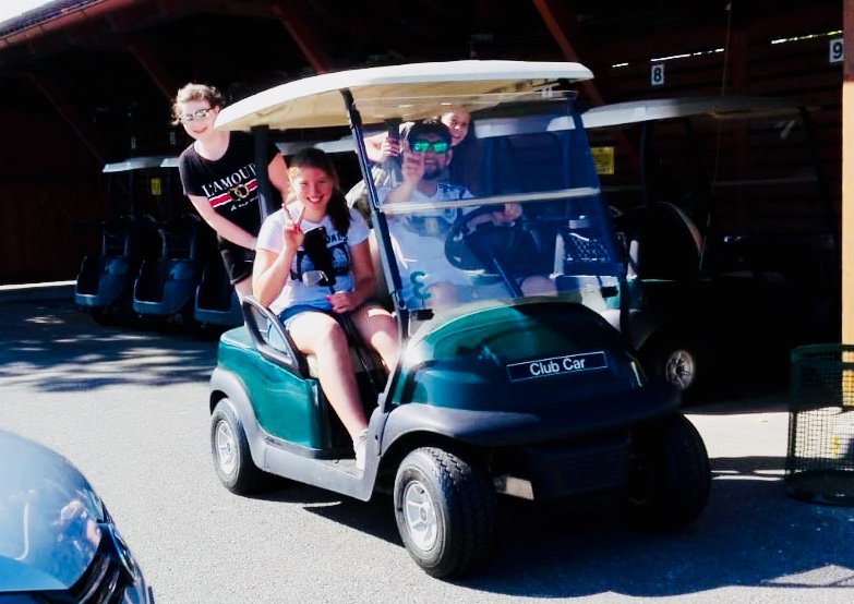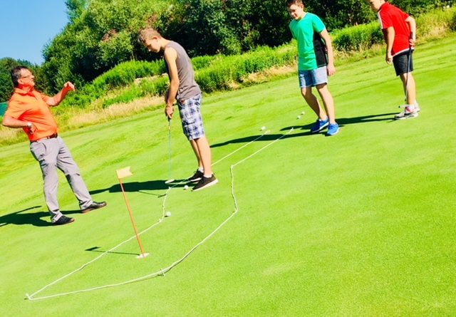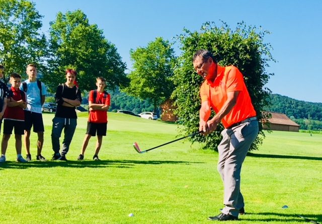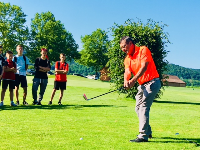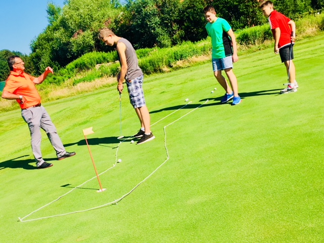 Dienstag: Zum Ausgleich wurde am Dienstag kräftig in die Pedale getreten. Unsere Radtour führte über die Mühlbreitenstraße und dem Stadtwald zum Golfplatz in Gillersdorf / TGC Loipersdorf-Fürstenfeld. Dort bekamen wir von Profis eine Einführung ins Golfen und konnten Lea Dilsky und unseren Herrn Hafner beim Golfen bewundern. Damit wir die Größe der 27 Spielbahnen erahnen können, wurden wir mit den Elektro-Caddys/Club-Cars über die gesamte Golfanlage geführt. Ja, das war super!!!!!!!