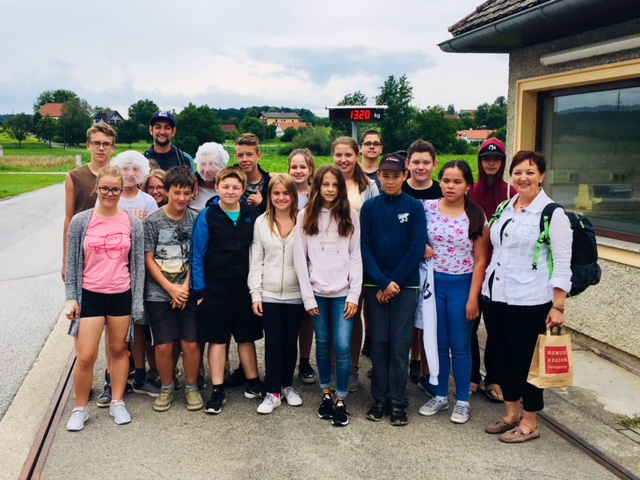 Nach dem Heimradeln waren wir natürlich hungrig und müde – somit verwöhnte uns Frau Weinhandl in ihrem Garten mit Grillwürsteln, Säften und Naschereien. Unter schattigen Bäumen konnten wir ausruhen.