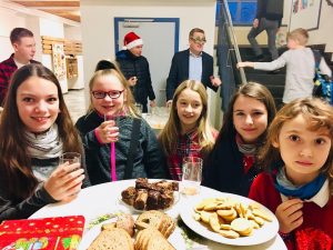 Bereits zur Tradition geworden, sorgte der wohlriechende Duft nach Früchtetee und frischem Brot für einen sanften und gemütlichen Einstieg in den Schulalltag. Dieses Jahr ertönte auch weihnachtliche Musik, die Leonard arrangierte.