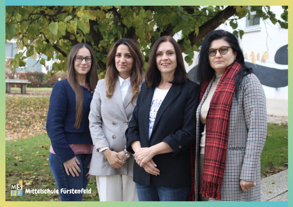 Betreuungspersonal Unsere engagierten Betreuerinnen Vivien Hujber (4a-Klasse), Cristina Stetcu (1a-Klasse), Sabine Riedl (3c-Klasse) und Olga (3b-Klasse) unterstützen ihre Schützlinge in den Klassen. v.l.n.r.: Vivien, Cristina, Sabine & Olga
